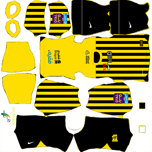 El kit Al Ittihad DLS 2025 incluye los uniformes completos del equipo, con el logo del club, los colores tradicionales y todos los detalles necesarios para representar a Al Ittihad con orgullo.